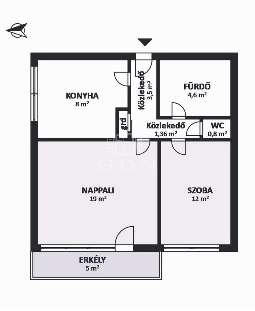 52 nm, 2 szoba, 5 nm erkély, 78.6 MFt.