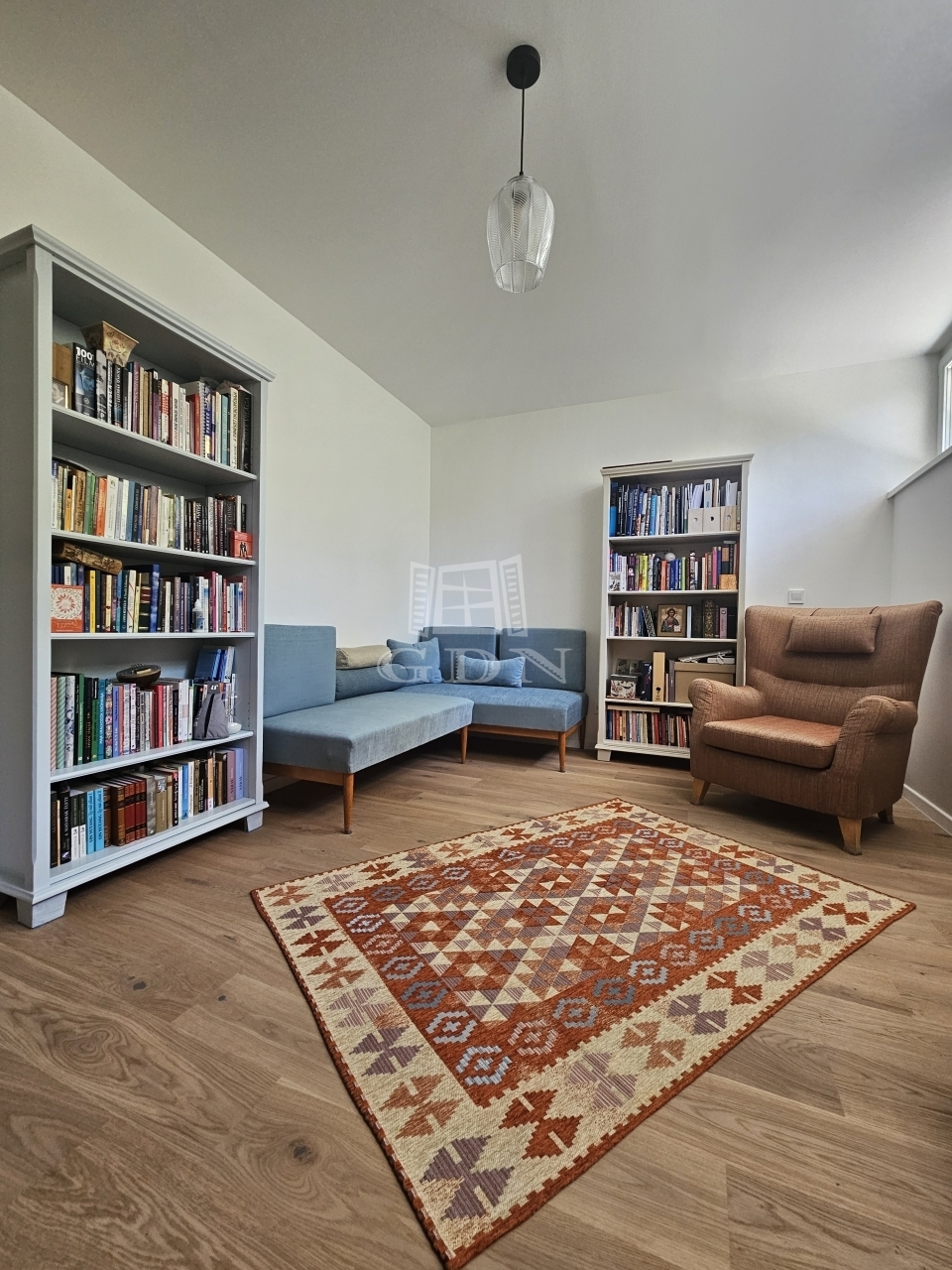 Bahaus stílus jegyekben újra gondolt lakás egyedi atmoszférával rendelkezik, ami csendes parkosított zöld környezetben található.