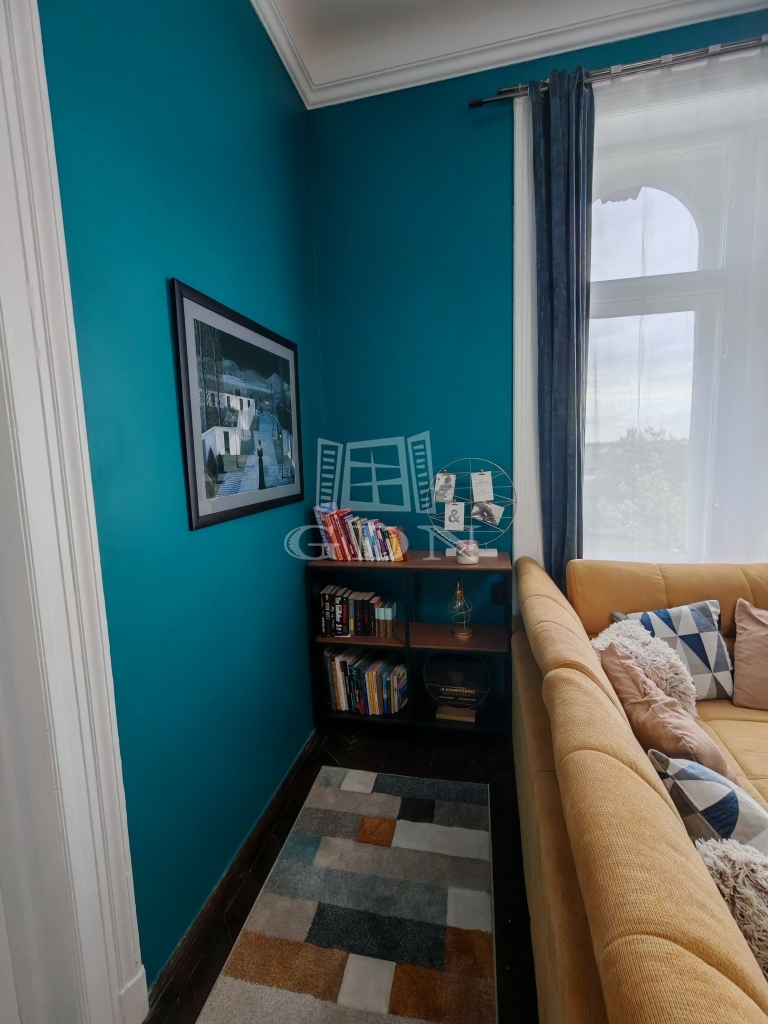 Az ingatlan egy 1910-ben épült, historizáló–eklektikus stílusjegyeket hordozó társasházban található, amely szépen őrzi a klasszikus polgári építészet hangulatát. A lakás különleges atmoszféráját a 3,6 méteres belmagasság, a tágas, világos terek, valamint a polgári lakásokra jellemző elegáns arányok adják, amelyeket a felújítás során fiatalos dizájnnal ötvöztek.