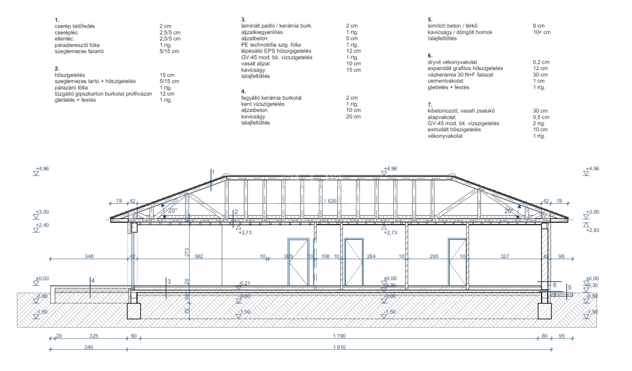A ház praktikus elrendezésének köszönhetően négy külön nyíló szoba és egy tágas amerikai konyhás nappali biztosítja a kényelmes mindennapokat, miközben a korszerű műszaki tartalom alacsony fenntartási költségeket garantál.