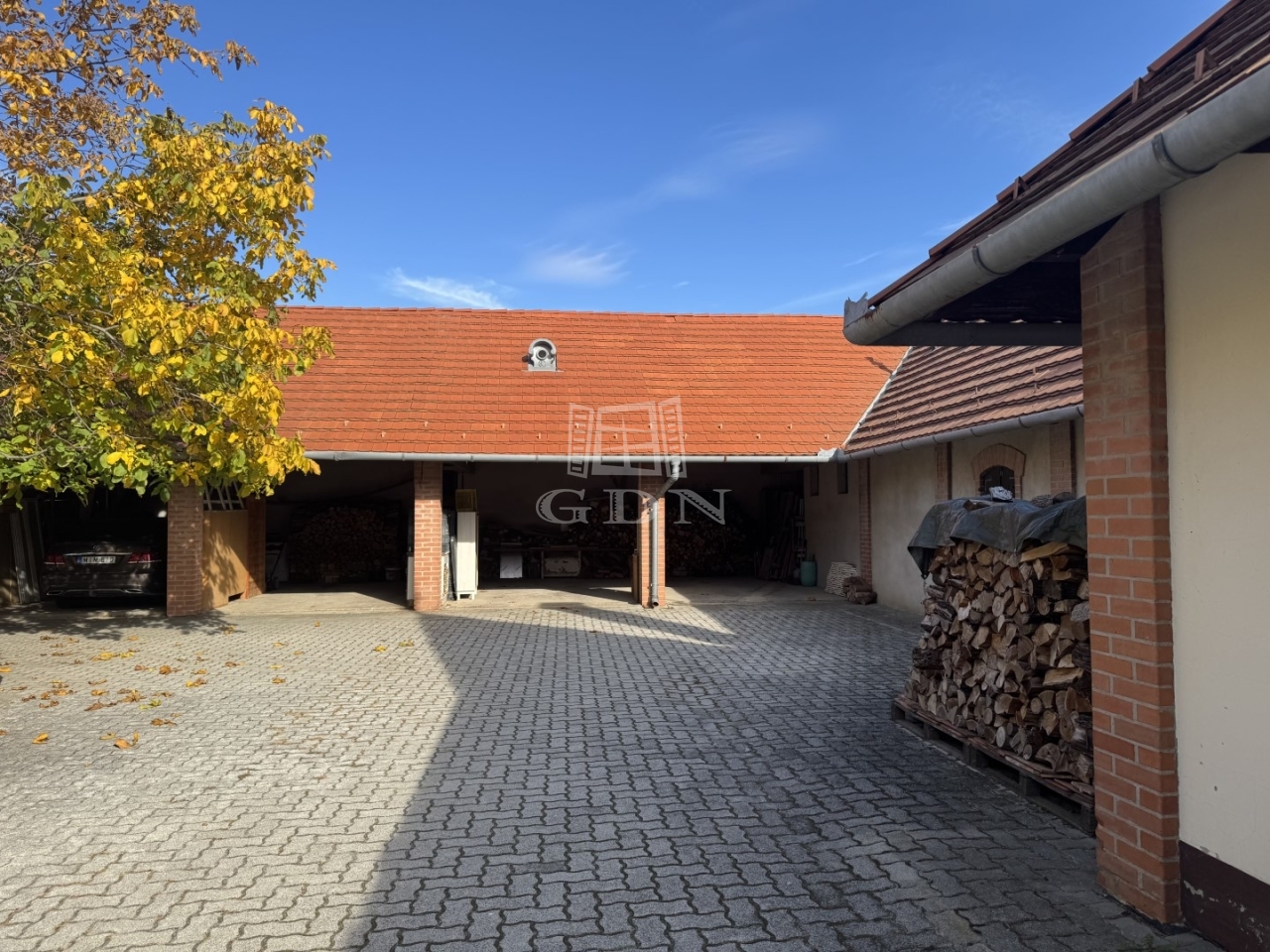 Az U alakú épületben ,több állásos gépkocsitároló, egy látszógerendás kb 50m2-es közösségi tér, és tárolók vannak.