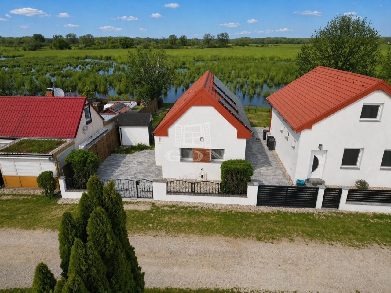 A kert gondosan kialakított, és közvetlen vízkapcsolattal rendelkezik. Napozás a kertben, nyári fürdőzés vagy akár egész éves horgászat a saját partszakaszról – itt valóban együtt éltek a természettel. A ház teljes berendezéssel és felszereltséggel kerül átadásra, így azonnal költözhető vagy nyaralóként is azonnal használható.