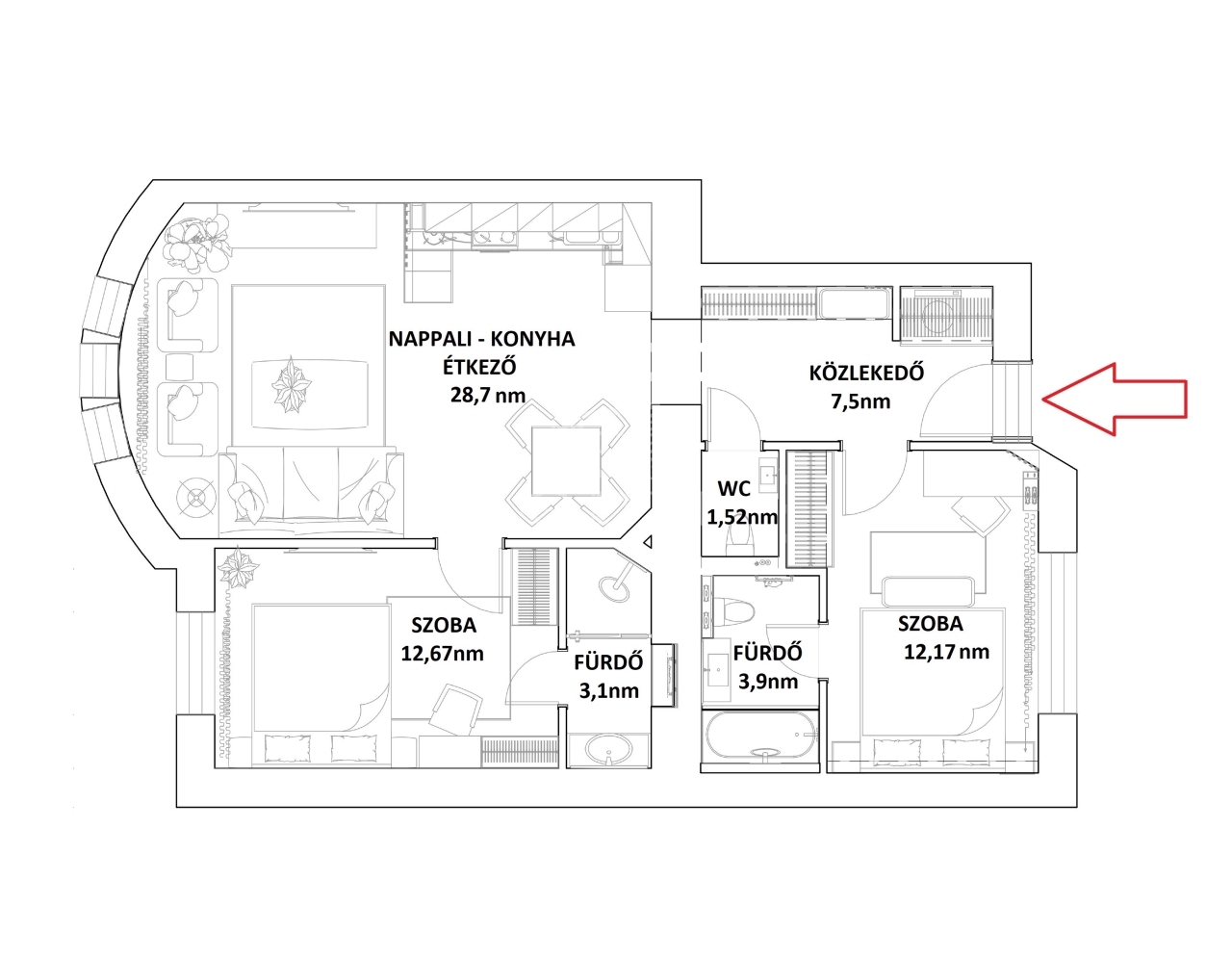 | 70 m2Wohnfläche | 3 Zimmer |