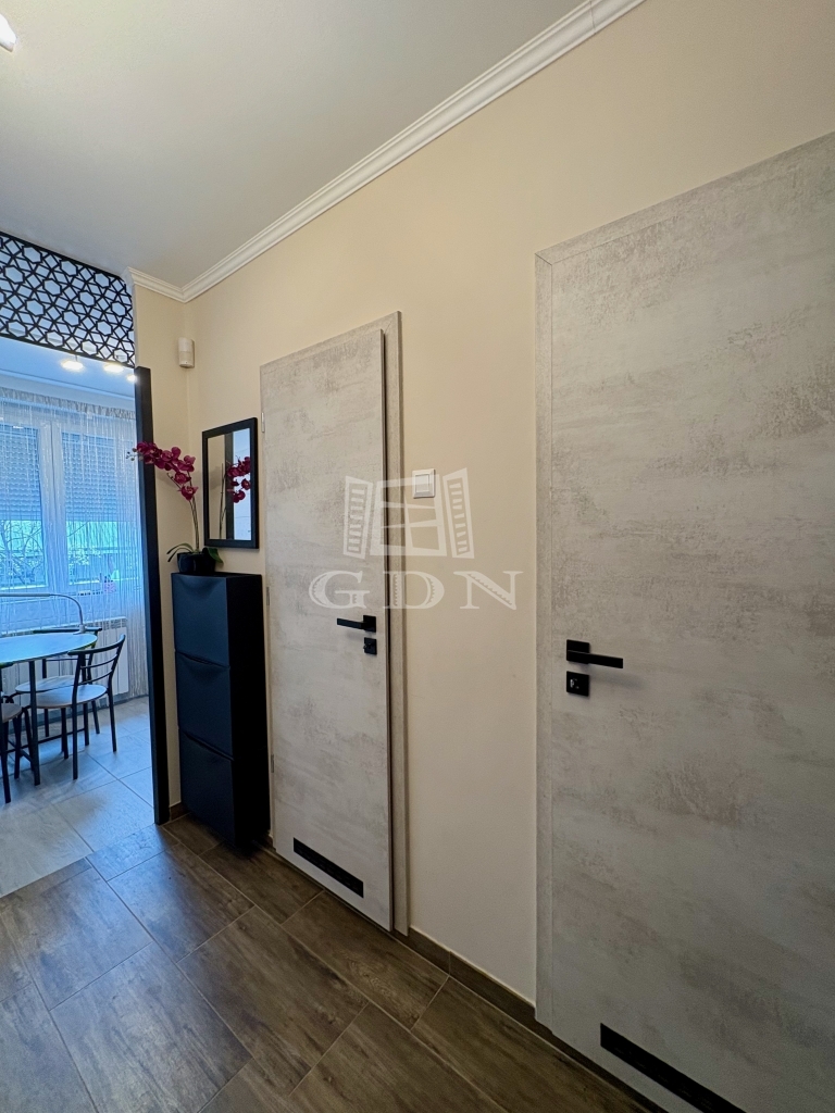 A lakás vételár részét képezi a gépesített konyhabútor(gáztűzhely, légkeveréses villanysütő, 9 terítékes mosogatógép, beépített mikró), a többi teljes bútorzat megállapodás tárgyát képezi.