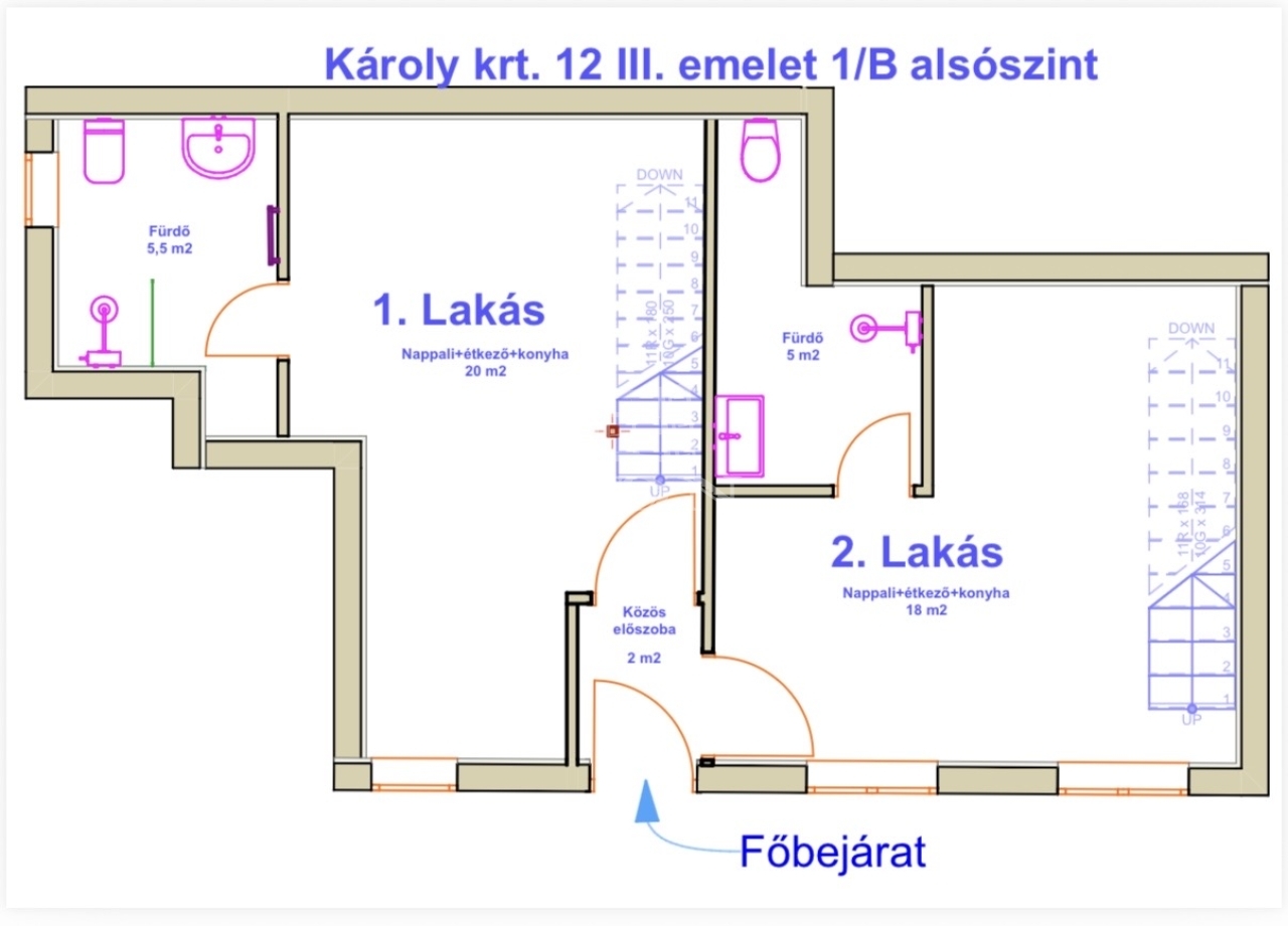 • Alsó szint: 18 m²