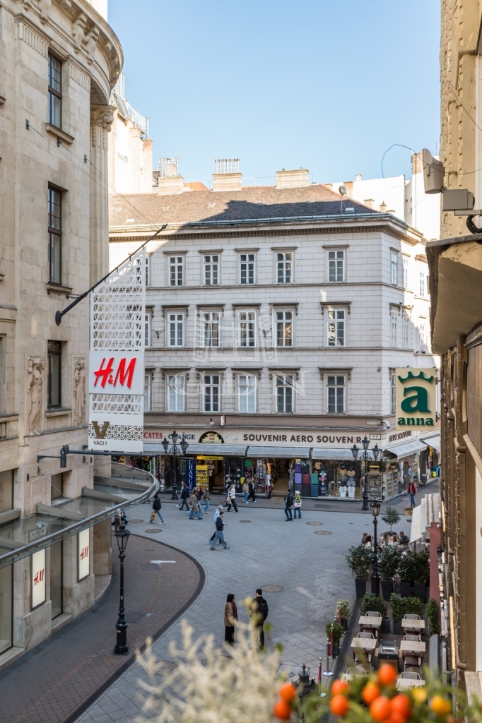 ELADÓ Budapest belvárosában, az V. kerület frekventált részén, a Vörösmarty tér és a Vígadó tér közelében, liftes, rendezett társasház 2. emeletén egy 85 m²-es, 3 szobás, két fürdőszobás, erkélyes, napfényes, délnyugati tájolású, utcára néző saroklakás.