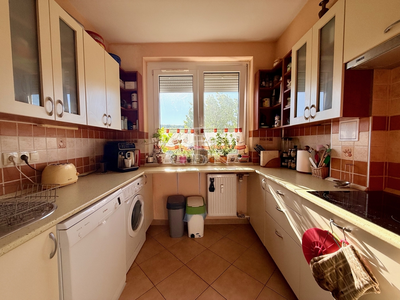 A felújítás igényesen készült, az állapot szép, a lakás klímával felszerelt, jelenlegi formájában azonnal használható. Az étkezős konyha külön érték, ritkább és jól használható megoldás ebben a kategóriában.