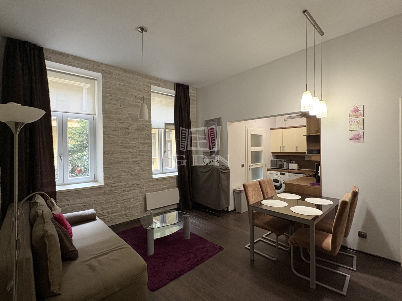 A lakás egy szép állapotú társasházban található, belső udvarra néző ablakokkal, így a belvárosi elhelyezkedés ellenére csendes, nyugodt környezetet kínál.