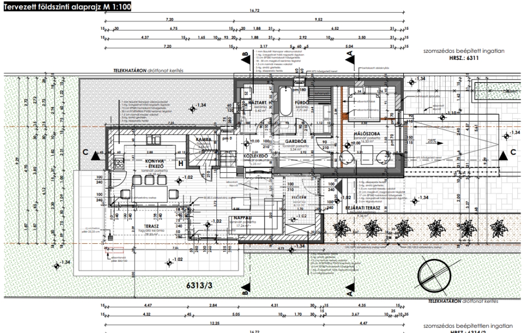 Az ingatlan 2021-ben kezdett épülni téglából, vasbeton és betongerendás födémmel, betoncseréppel. A homlokzat 15 cm-es szigetelést kapott.