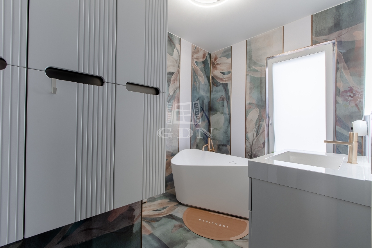 A tágas, világos nappali berendezve várja új tulajdonosát, a fürdőszobákban pedig felső kategóriás, bronz és rosegold színekben pompázó TRES csaptelepek és zuhanyok, valamint érintésmentes szappanadagolók és szemetesek szolgálják a kényelmet.