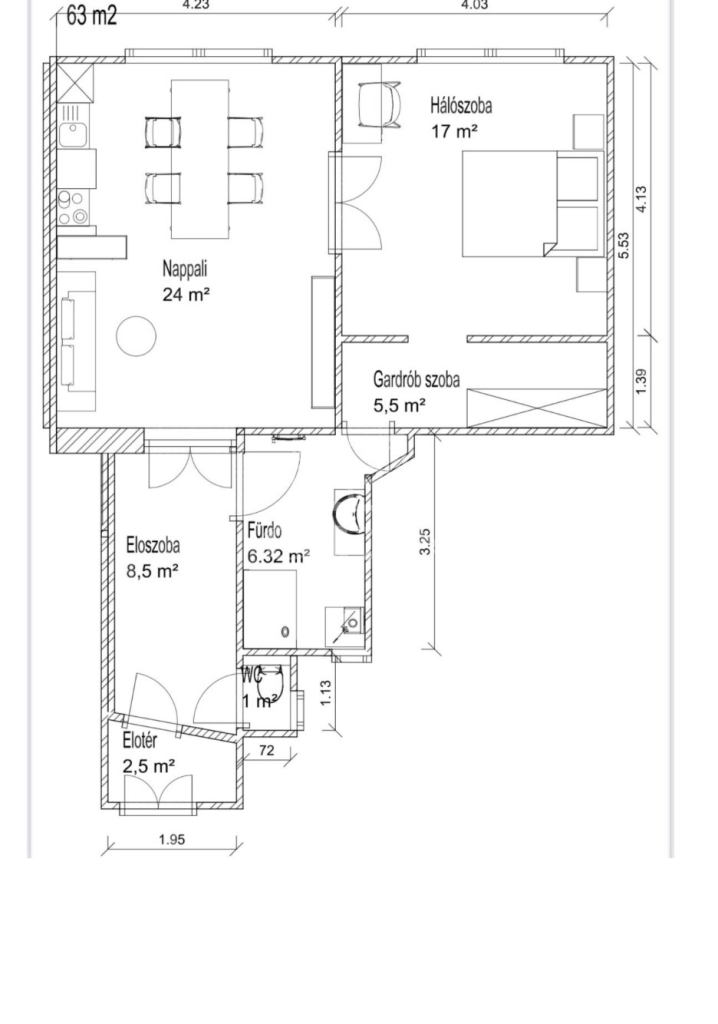 63 m2Alapterület 2 + 1 Szoba