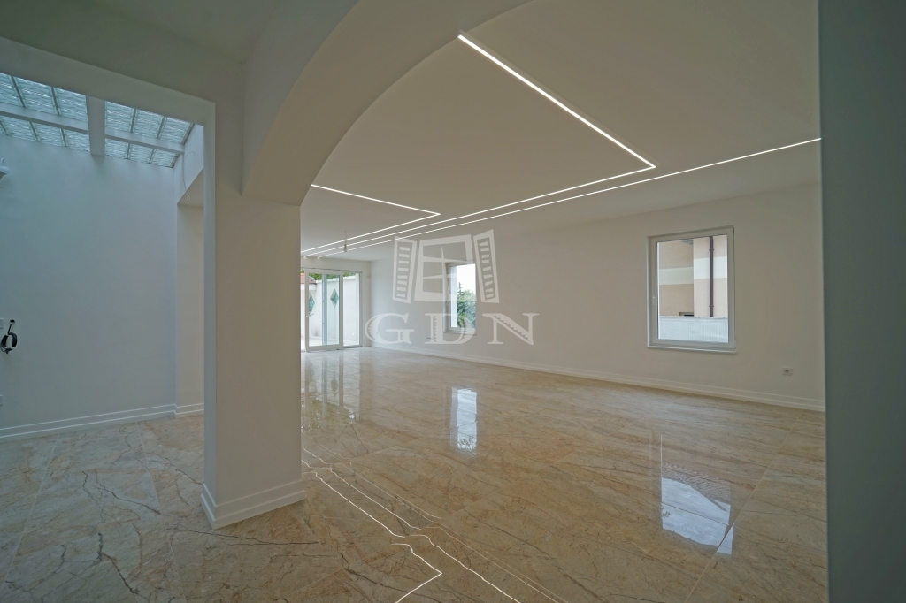 Budapesten a XVII. Kerületben a Pesti útról nyíló 848m2-es telken, eladó egy nettó 523m2-es 7 szoba + 2 nappalis, fűthető belső medencés, háromszintes luxus családi ház.