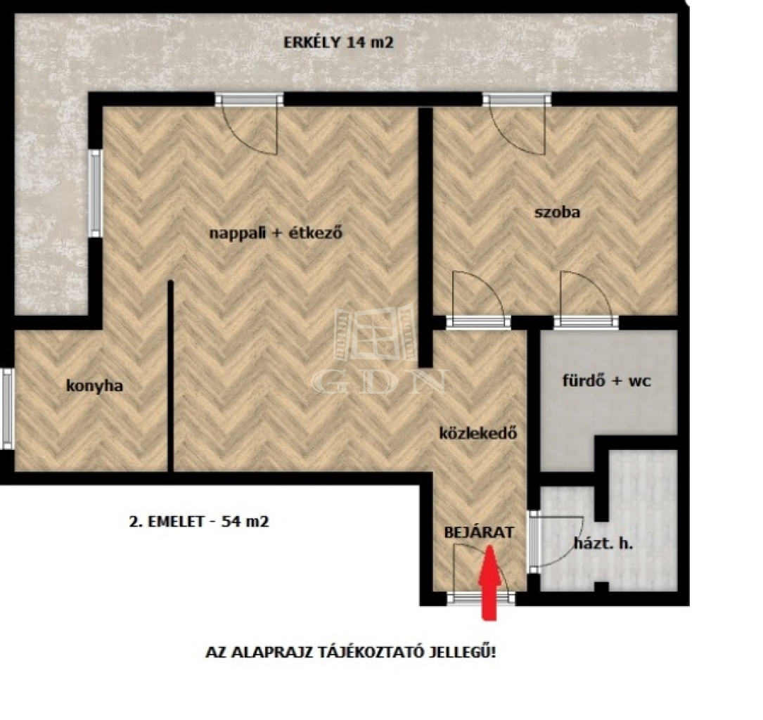 2. EMELET: 54 m2 – 2 szoba – 2 fürdő – TERASZ: 14 m2