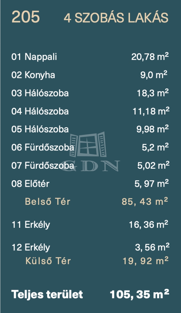 | 85 m2Alapterület | 4 Szoba |