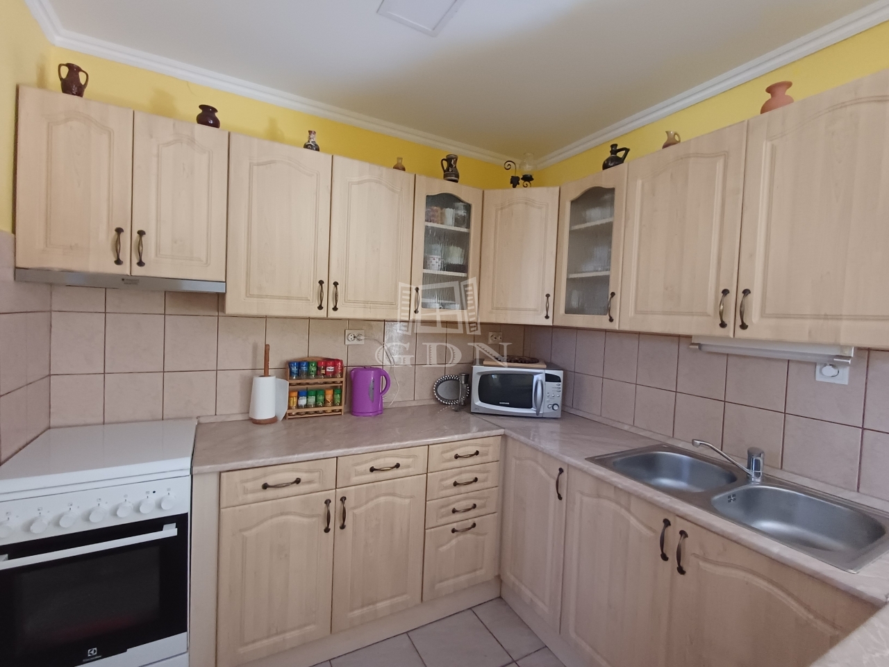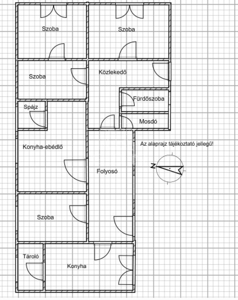 A ház praktikus elrendezésű: hosszú, világos folyosó fogad bennünket, innen nyílik a konyha (amely akár szülői hálószobává is alakítható), valamint egy tárolóhelyiség, amely gardróbbá alakítható. Az otthon része egy tágas, szoba, egybenyitott konyha–étkező tér, külön mosdó, tusolós fürdőszoba, közlekedő, nappali, valamint két utcafronti szoba.