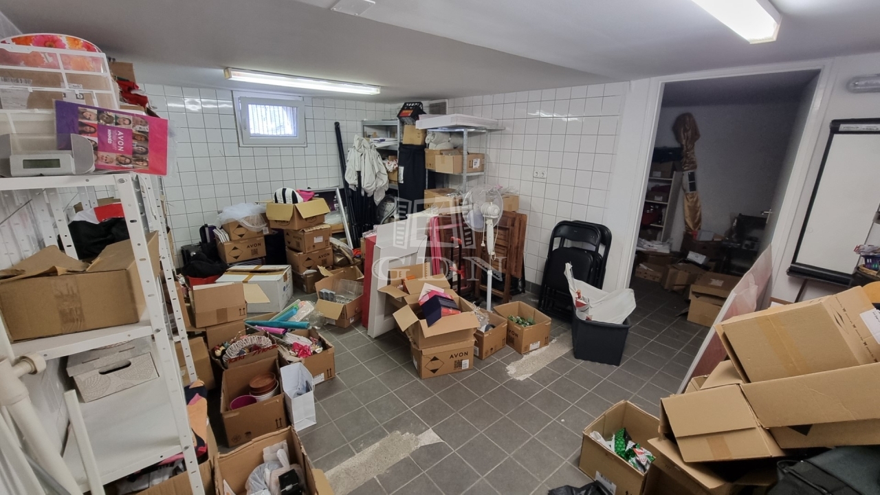Elosztását tekintve két tágas és világos helyiségből (igény esetén összenyitható), két wc-kézmosóból, egy teakonyhából és egy nyitott helyiségből, illetve egy alagsori részből áll.