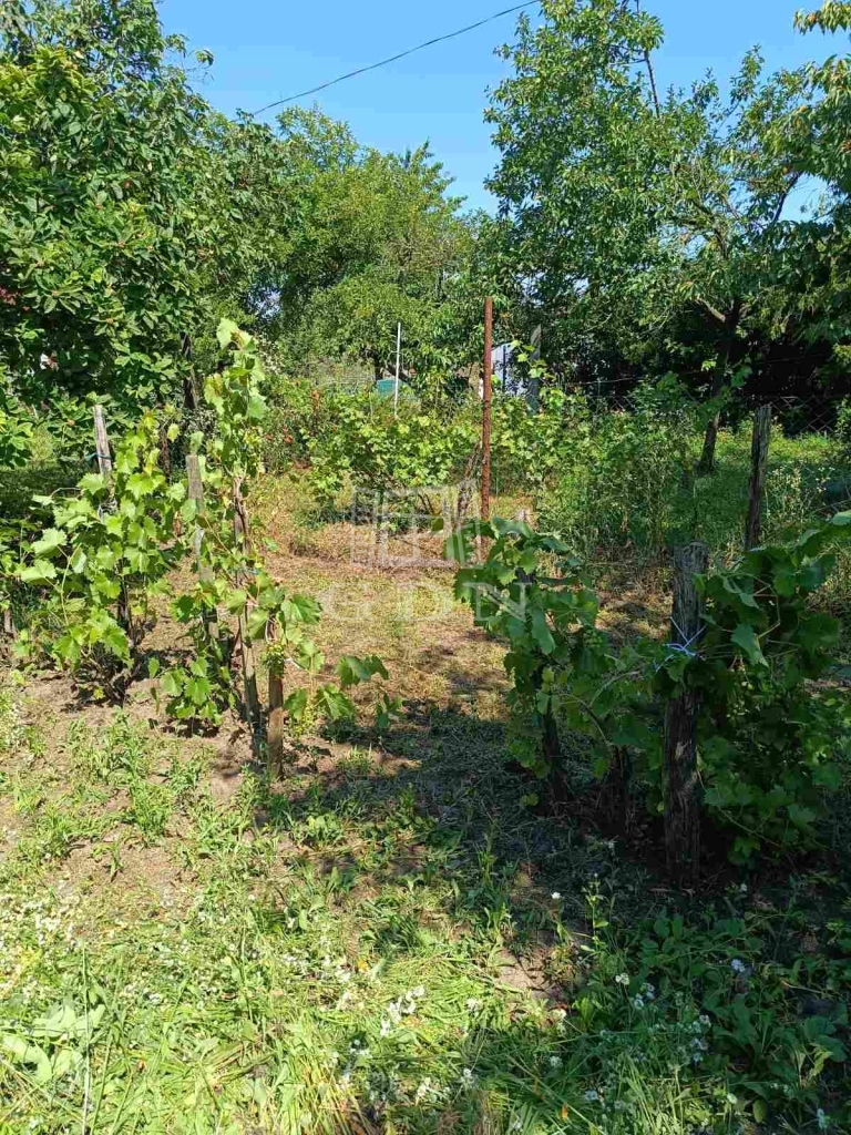 A telek körülkerített, gyümölcsfákkal beültetett.