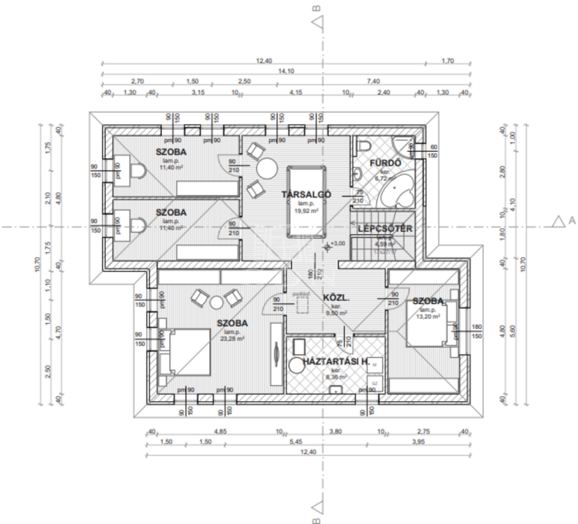 Az ingatlan praktikus elrendezésű: nappali + amerikai konyha mellett 4 külön nyíló szobával, valamint 2 fürdőszobával rendelkezik, így ideális választás családok számára. Minden ablak redőnnyel felszerelt. A belső kialakítás során a burkolatok, szaniterek, térkövezés és beltéri ajtók a vevő igényei szerint választhatók.