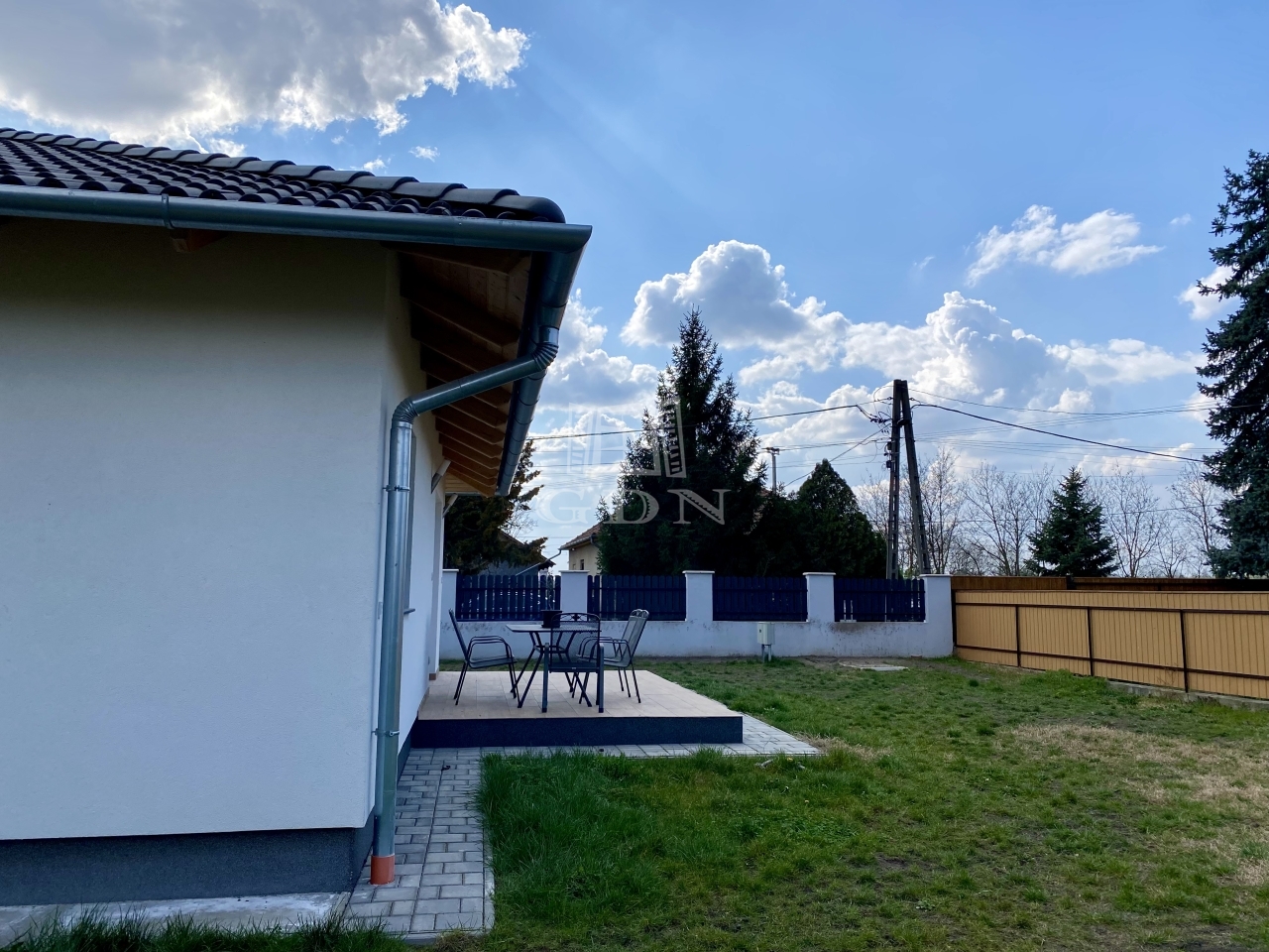 Az ingatlan 592 négyzetméteres telken helyezkedik el, amely ideális méretű a pihenéshez és a mindennapi használathoz. A kertben egy 15 négyzetméteres terasz biztosít kellemes helyszínt a kikapcsolódáshoz, emellett egy masszív, betonalapra épített tároló is rendelkezésre áll. A kényelmet tovább növeli az elektromos kapu, a kocsibeálló, valamint a fúrt kút jelenléte.