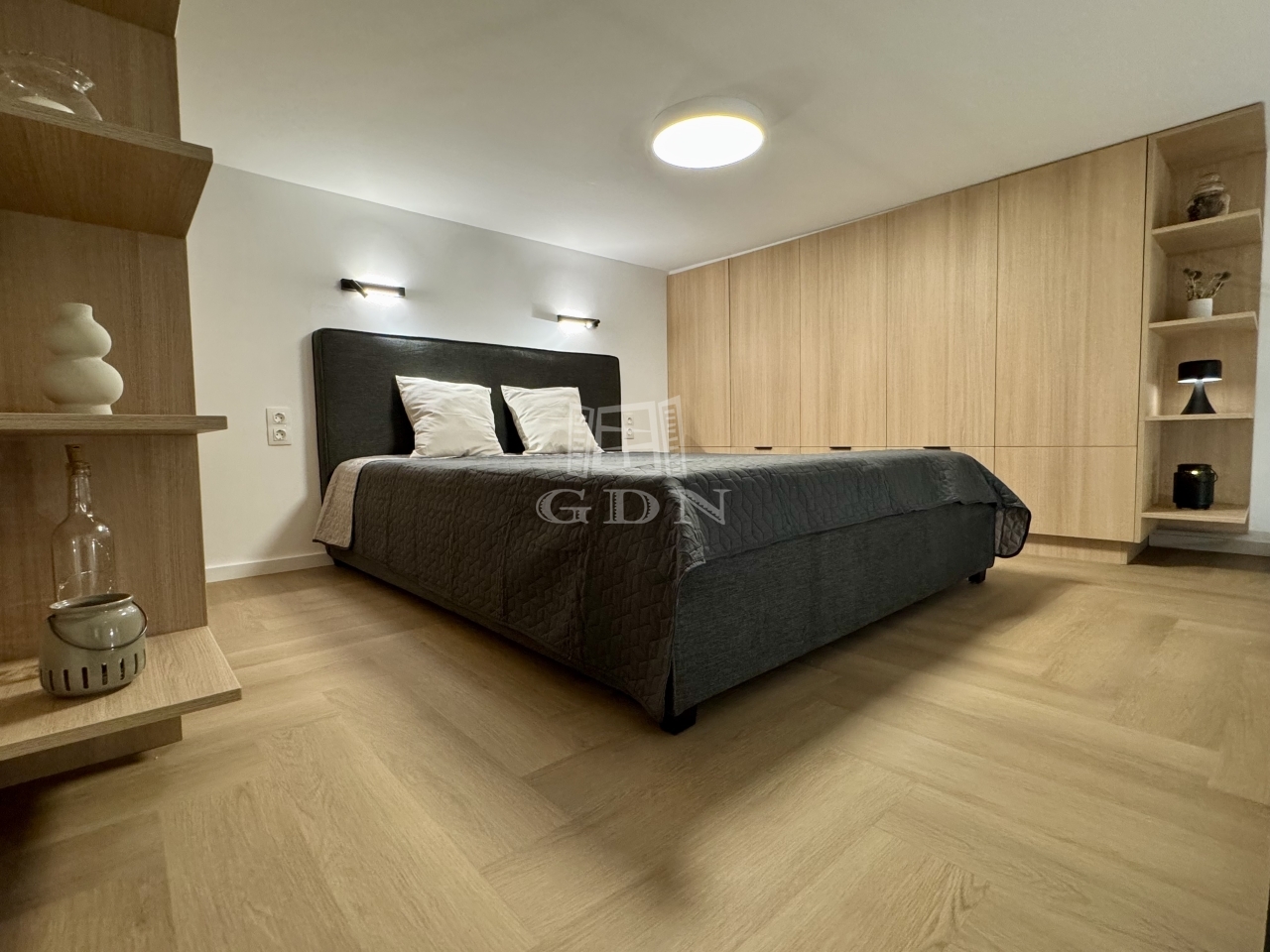 A lakás magas belmagassága lehetővé tette egy 11,68 m²-es állógaléria kialakítását, amely hálószobaként és extra tárolóként is funkcionál, így a tér jóval tágasabb és kényelmesebb a megszokottnál.