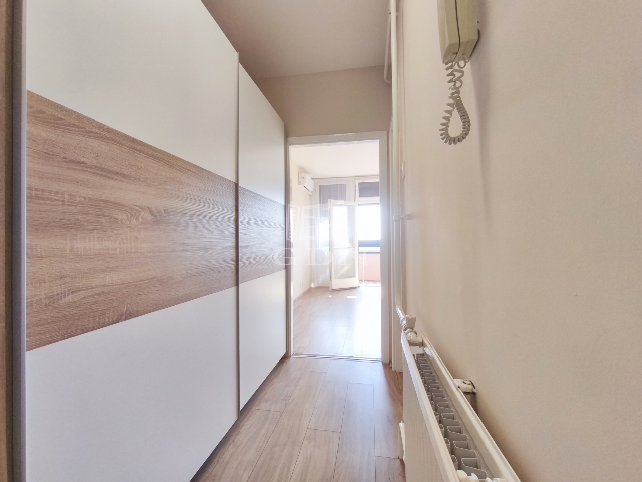 A lakás praktikus elrendezésű: a tágas, világos szoba erkélykapcsolattal bír, mely mellett külön konyha, valamint egy fürdőszoba került kialakításra.