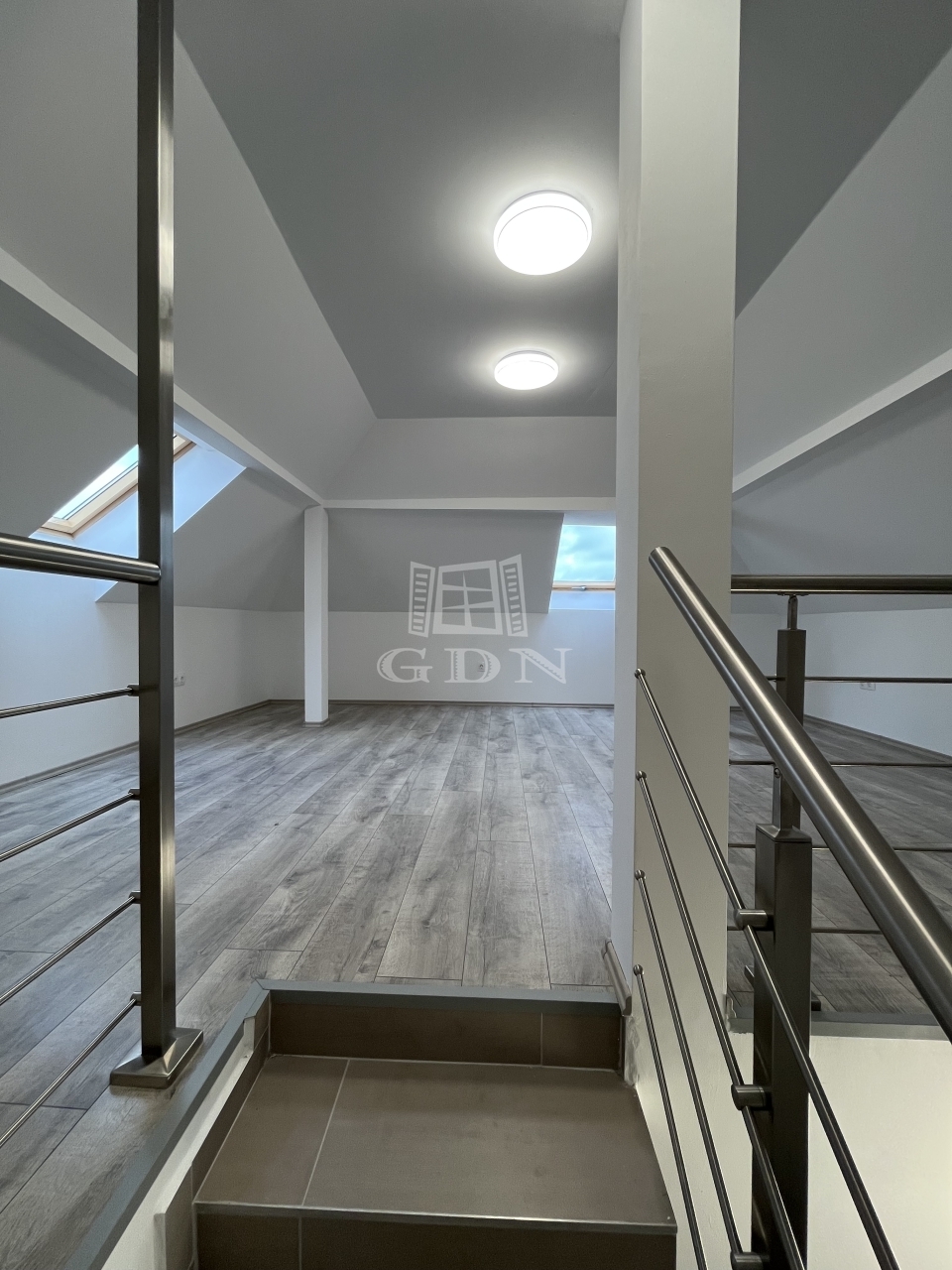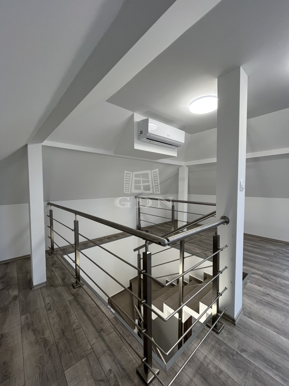 A 70 m²-es földszinthez egy 25 m²-es, igényesen beépített tetőtér kapcsolódik, így összesen négy kényelmes, jól elrendezett szoba áll rendelkezésre.