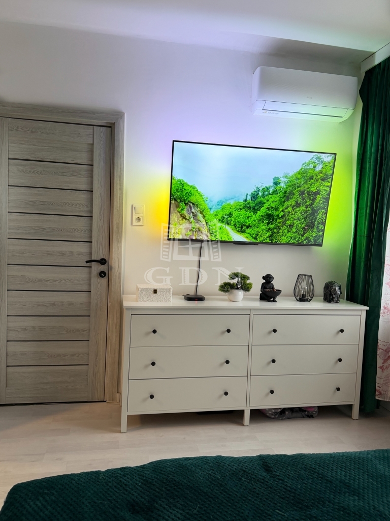 A lakás 1 hálószobával, 1 nappalival, külön nyíló konyhával, kádas fürdőszobával, gardróbbal és egy (jelenleg) loggiával rendelkezik. A loggiát elkezdték erkélynek alakítani, ez egyelőre félbemaradt. Régen egy kis szobaként funkcionált így igény szerint akár így is hasznosítható. Az ingatlan vételárába a beépített dolgok számítanak bele, a többi bútor megegyezés kérdése.