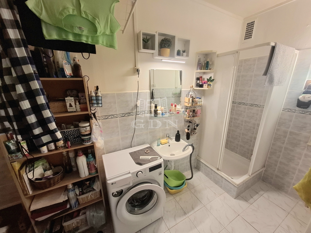 A lakás a társas-ház első emeletén helyezkedik el, elosztása