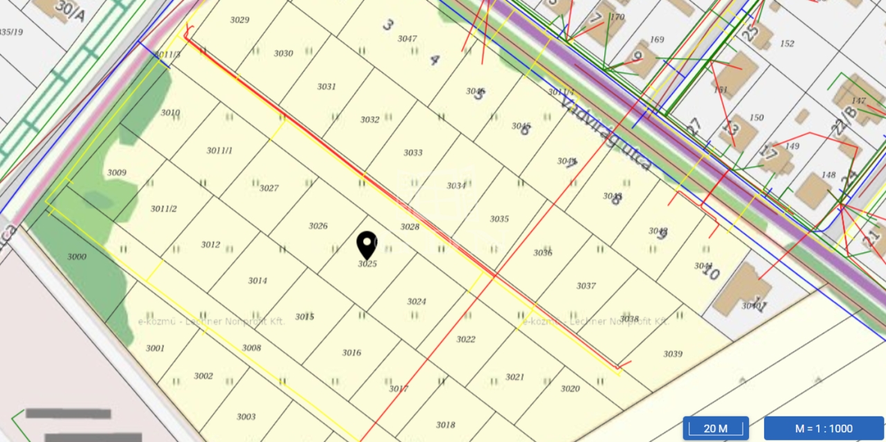 A telek 677 m2, sík területű, szabályos téglalap alakú.