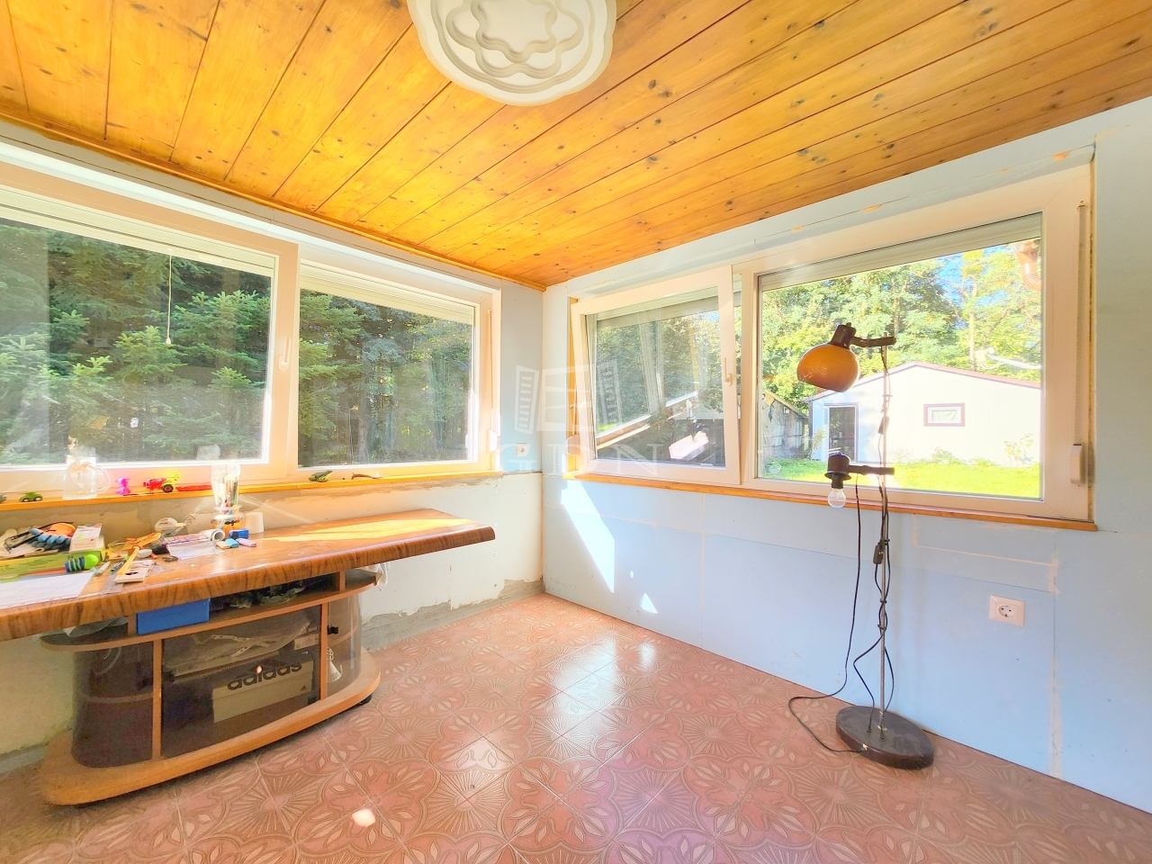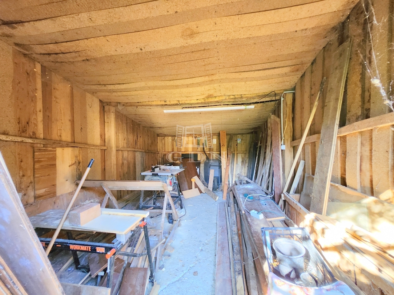 A kertben található egy fából épült kisház is, mely barkácsolásra tökéletesen alkalmas teret biztosít.