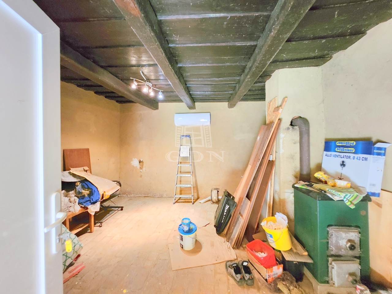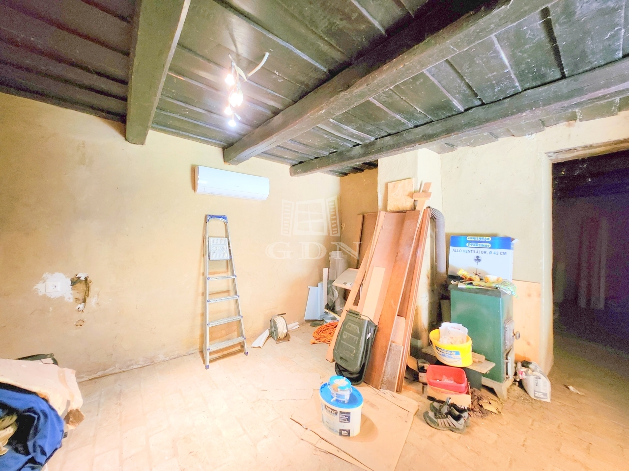Az áramhálózat, illetve tető felújítás lezajlott, utóbbi szintén cserepes lemezzel borított. Fagerendás döngölt földdel ellátott födémmel rendelkezik, melyen betonkoszorút találunk.