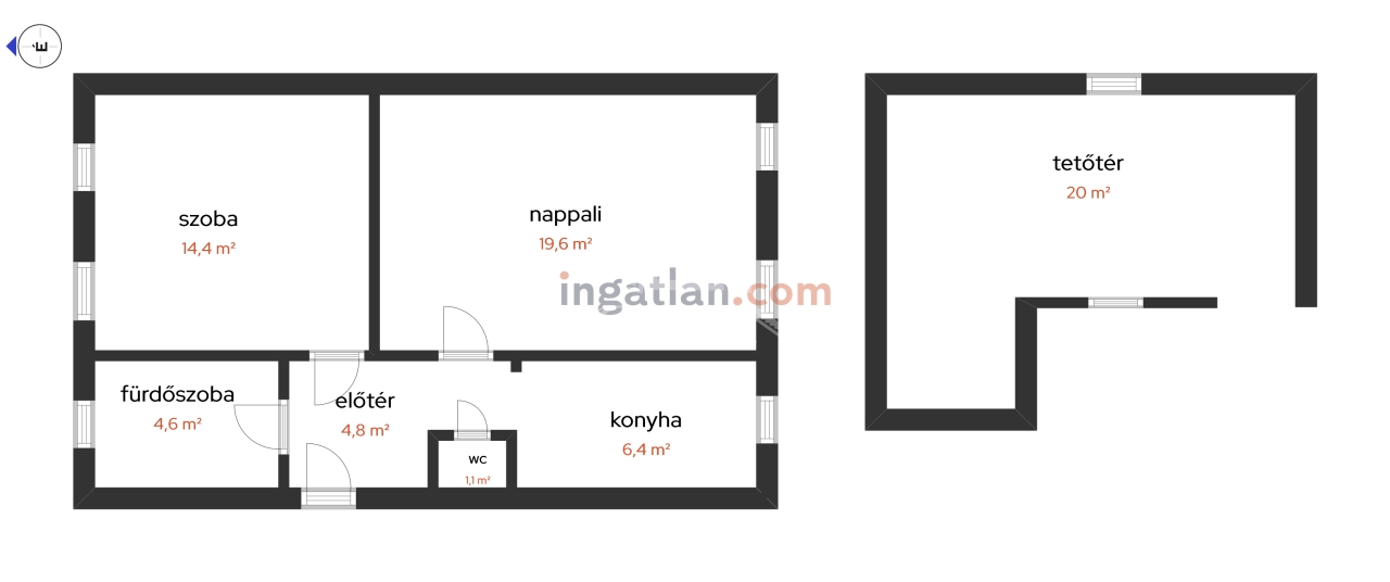 | 61 m2Space | 2 Rooms |