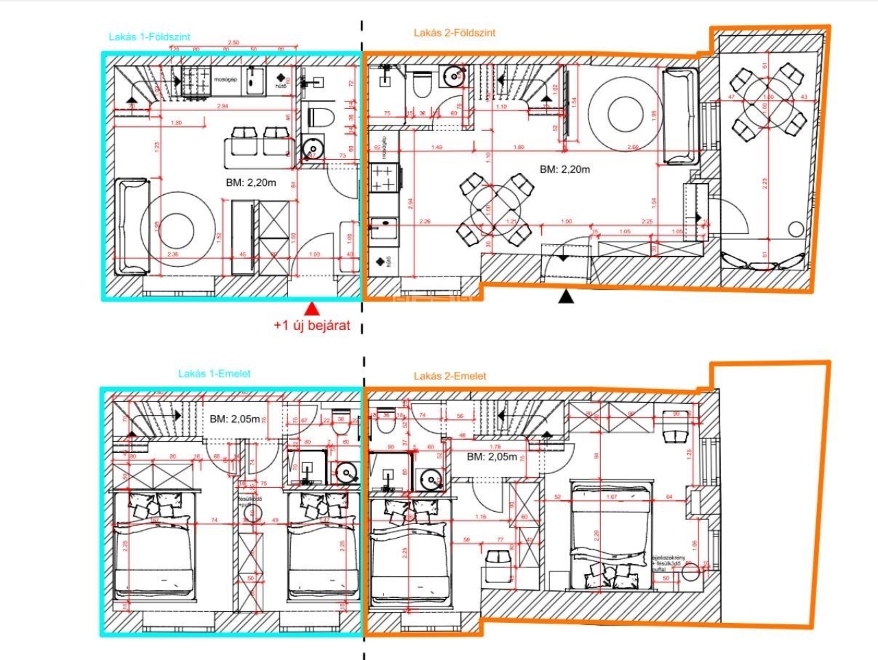 Mindkét lakás belső kétszintes, duplakomfortos, és kiváló elosztású: