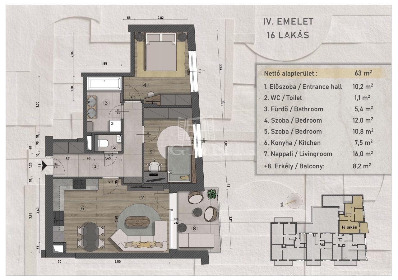 | 63 m2Space | 3 Rooms |