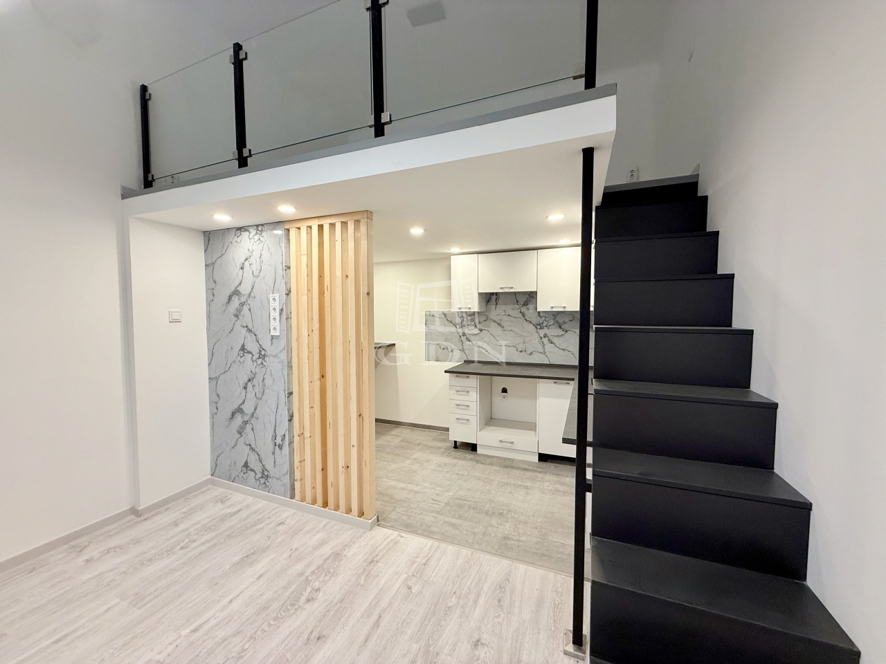 • „A” lakás: 27 m² + 9 m² galéria, elkészült konyhabútorral, gépészetkész állapotban.