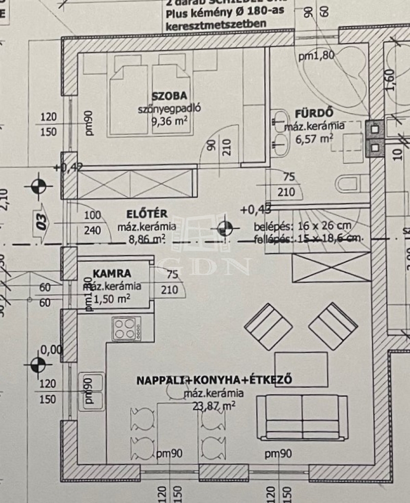 Az ingatlan kis udvarrésszel, saját 18m2-es garázzsal (galériás tárolóval) és tágas, 24 m²-es, részben fedett terasszal rendelkezik – tökéletes hely a pihenésre vagy közös családi programokra.