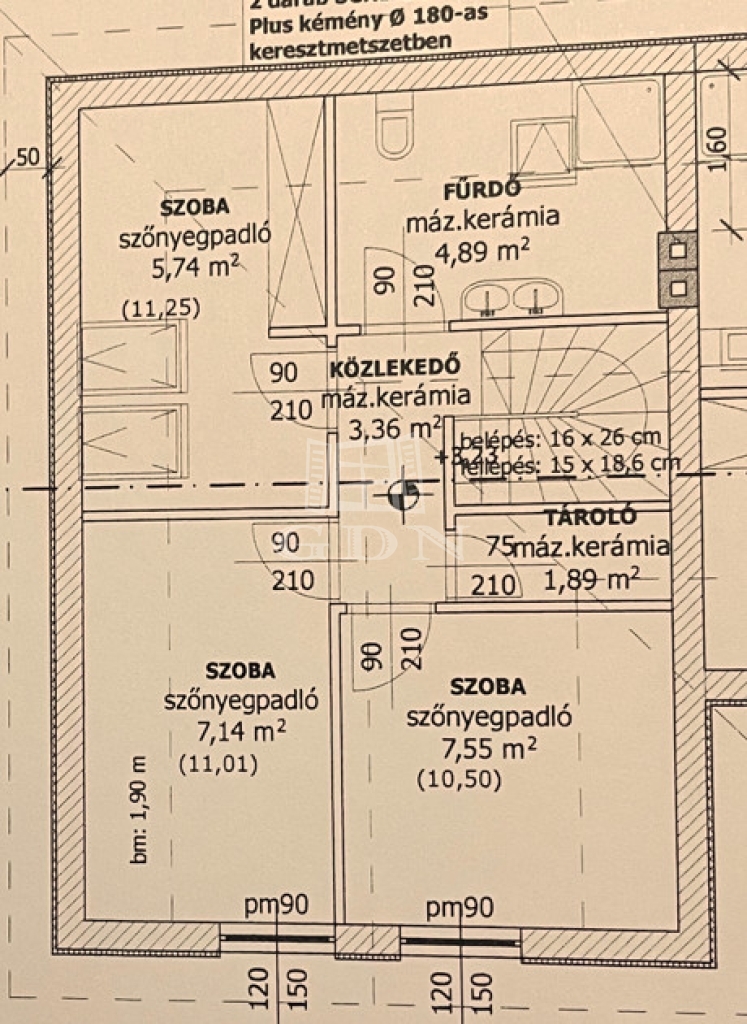 Az emeleti részen 3 szoba található és szintén egy fürdőszoba.
