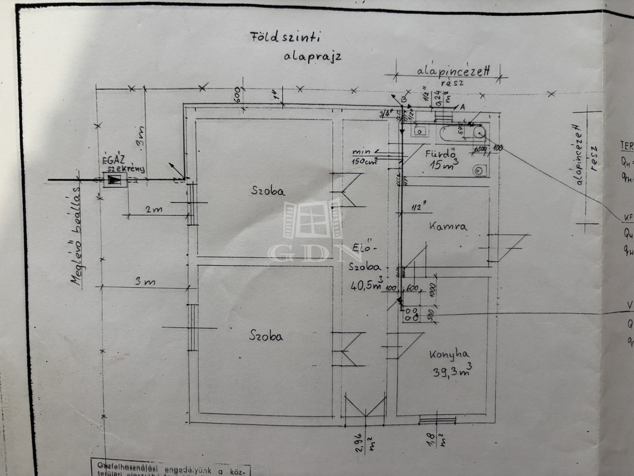 Vasbeton alappal, betongerendás födémmel rendelkezik. ( beépítés statikai szakvélemény után lehetséges).