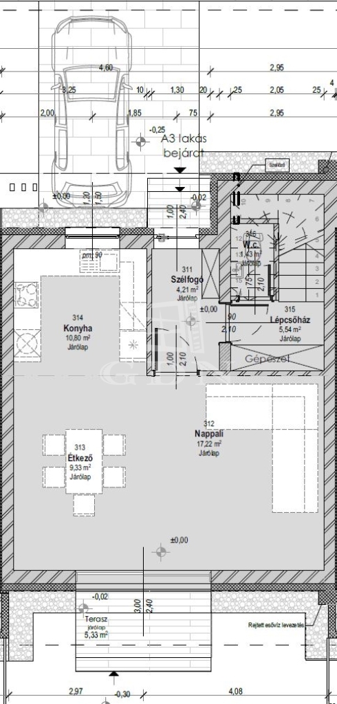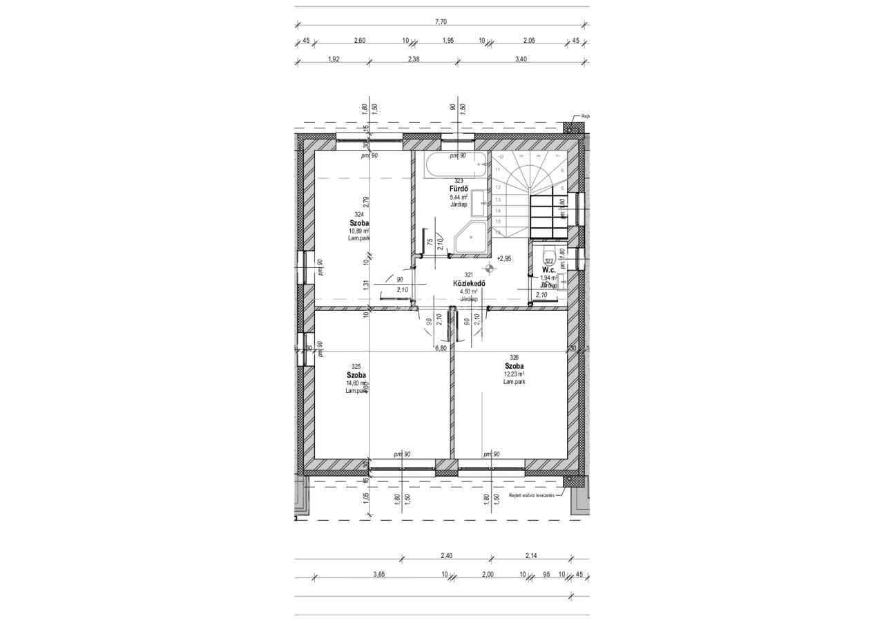 - Födémszerkezet 20 cm vastag monolit vasbeton szerkezet XPS kiegészítő hőszigeteléssel.