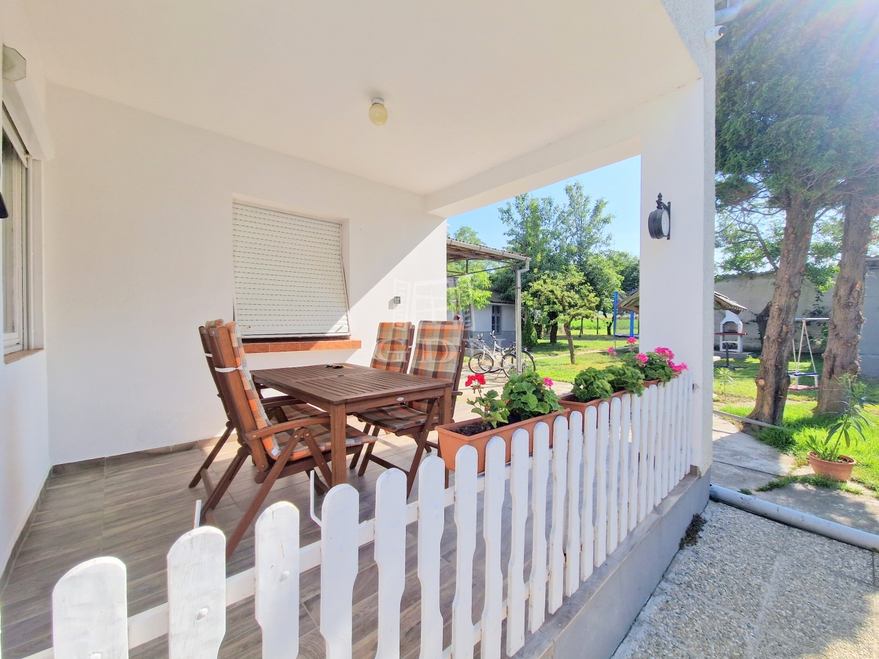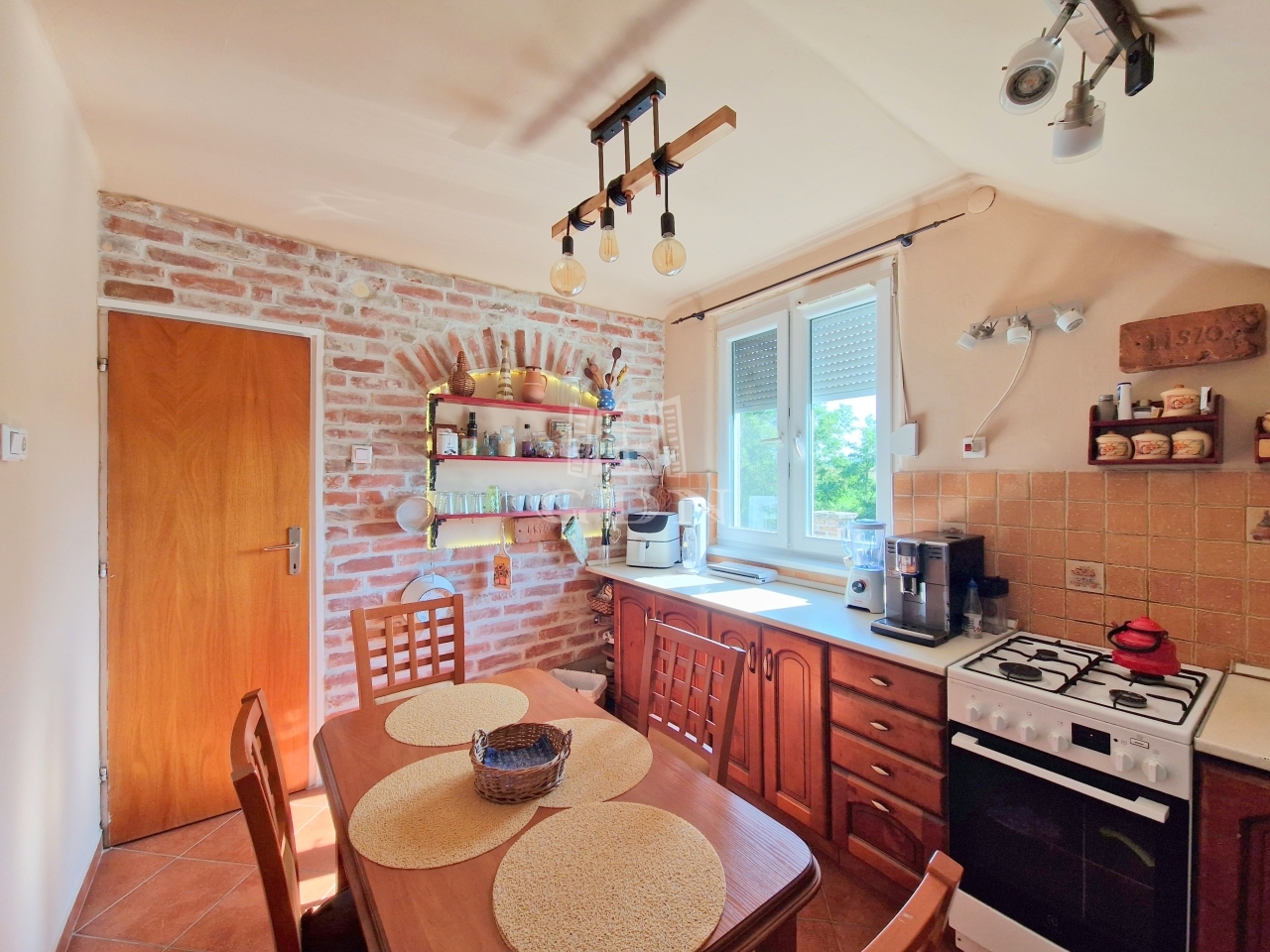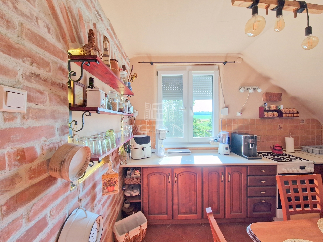 - helyiségei 73 m2-en: előtér, közlekedő, konyha, 2 háló, egy spejz, egy fürdőkáddal ellátott fürdőszoba. valamint egy nyári konyha, és az ott található külön helyiségben lévő toalett.