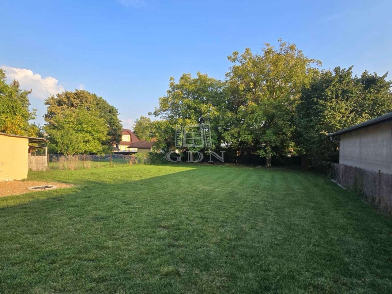 -Délnyugati fekvésű, fedett terasz, gondozott, sík, 957 m2-es kert, 2 nagy diófa, cseresznyefa, bokrok