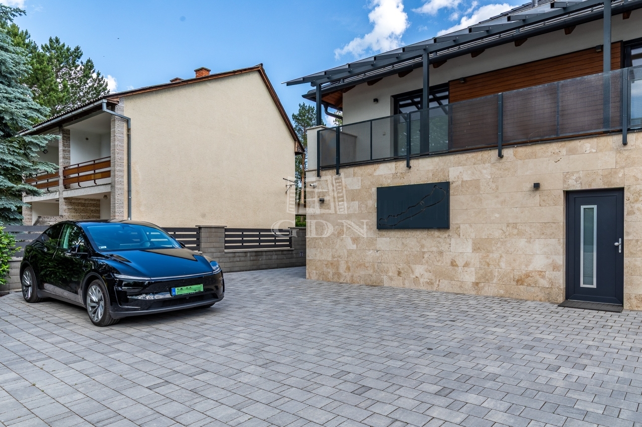 Az ingatlan kertész által gondozott kerttel, programozható öntözőrendszerrel, kamera-, beléptető- és riasztórendszerrel, valamint elektromos autó töltővel felszerelt.