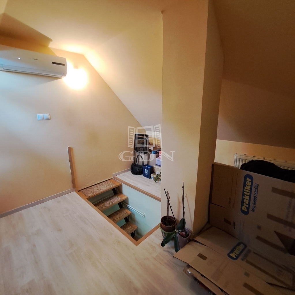 - Az ízlésesen kialakított 1.emeleti téglalakás 62 m2, amely lépcsőfeljáróból, nappaliból, konyhából, közlekedőből, tetőtéri hálószobából és fürdőszoba WC-ből áll.