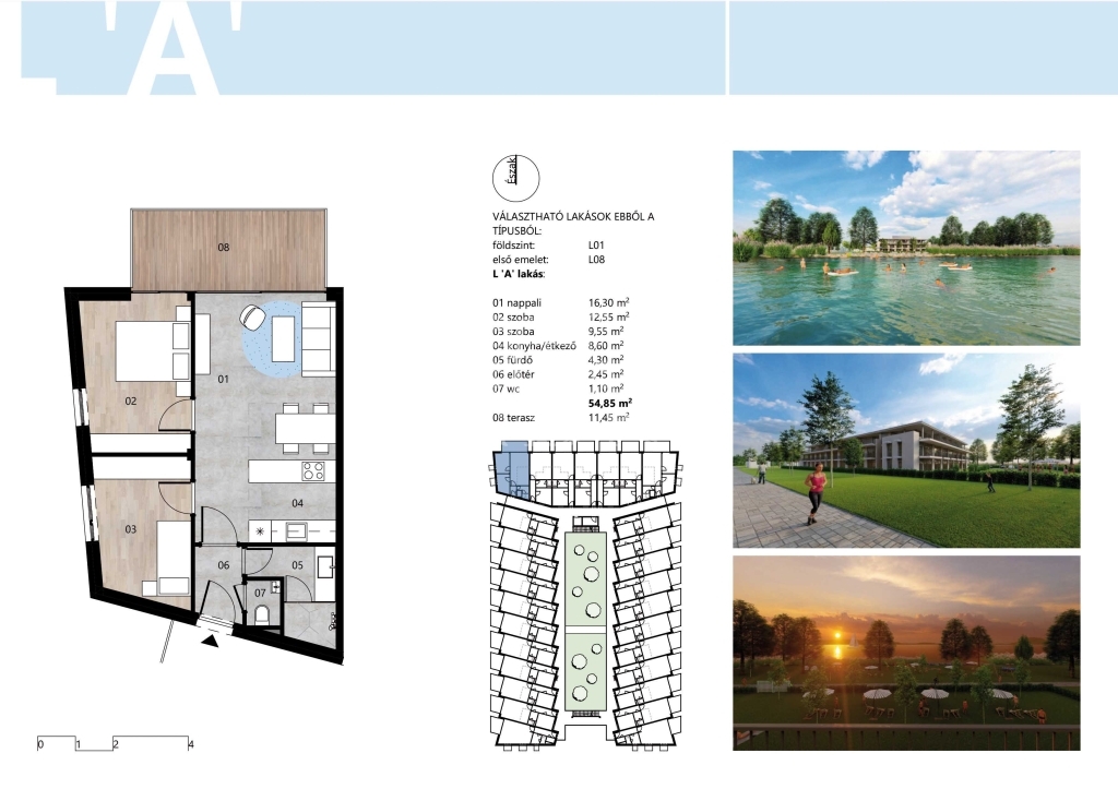 L’A’ jelű lakás típusunkból a földszinten található, L01-es elérhető.