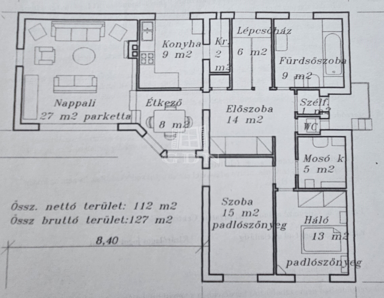 Az ingatlan 285 m2 alapterületű, nappali + 5 szobás elrendezésű.