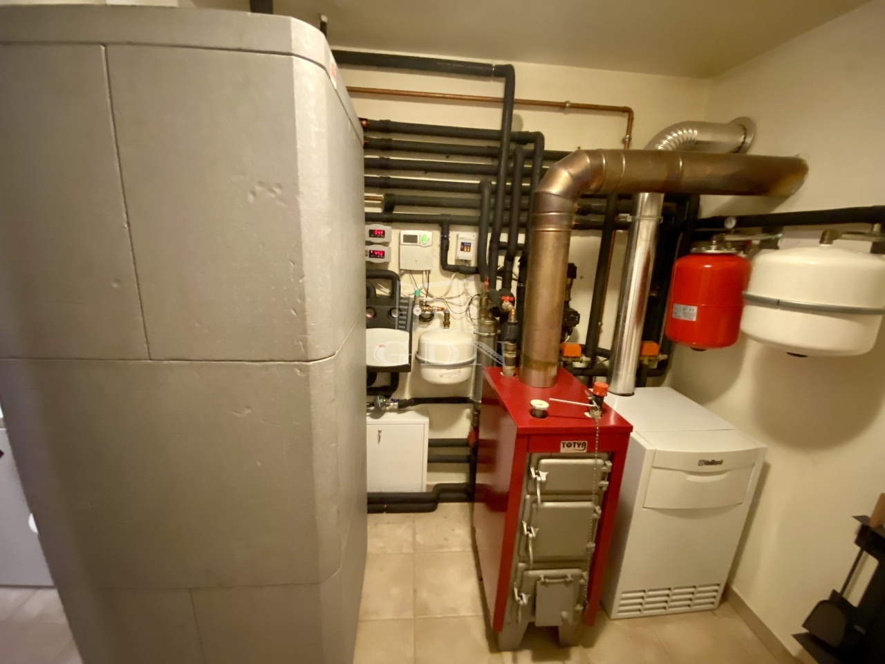 Fenntarthatóság & Technológia: Napkollektorral támogatott fűtésrendszer (gáz- és vegyes kazánnal), vízlágyító és automata vezérlés.