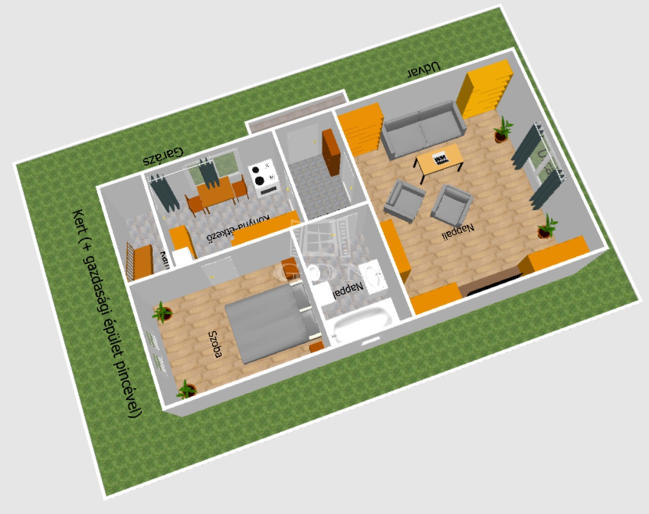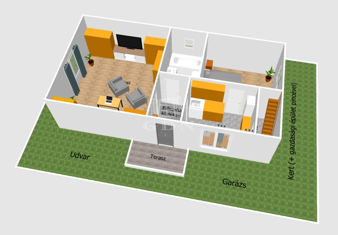 Stabil fedél szék, cserép fedéssel, a tetőtér beépíthető, mellyel növelhető a nettó alapterület!