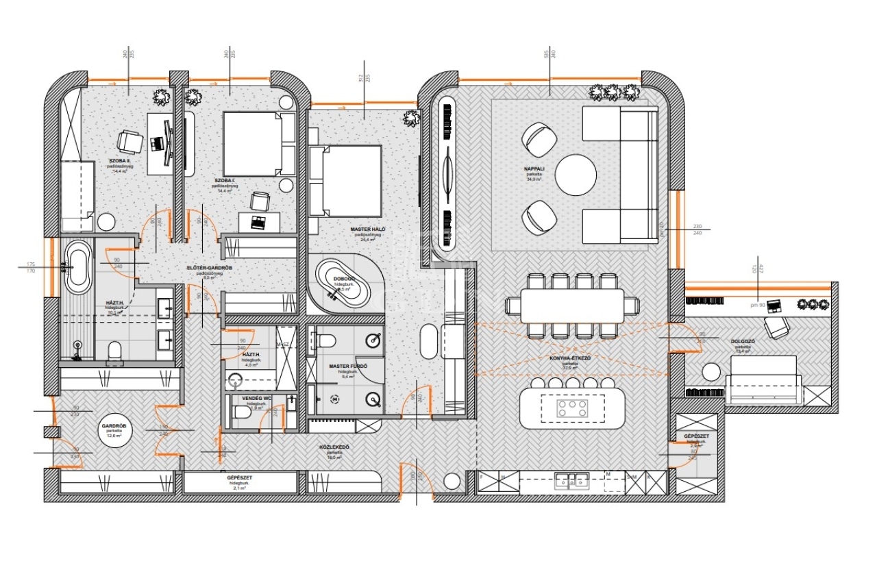 The 103 sqm south-facing panoramic terrace bathes the entire home in natural light. Every room enjoys uninterrupted views of Pasarét and Istenhegy – an eternal asset no development can ever replace.