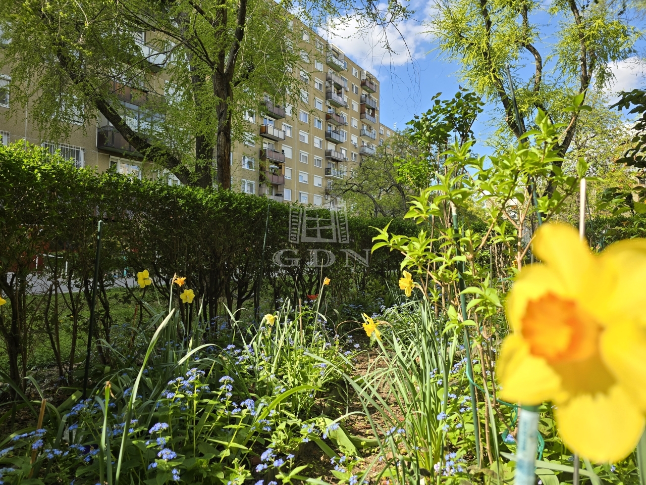 A 1986-ban épült 60 lakásos társasház 10 emeletes. A lépcsőház karban- és tisztán tartott. A lakás a 8. emeleten található. Lift szolgálja a lakók kényelmét. A társasház mögött egy park biztosítja a lakók kikapcsolódását és nyugalmát.