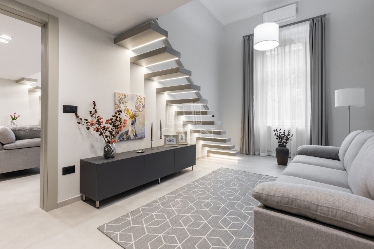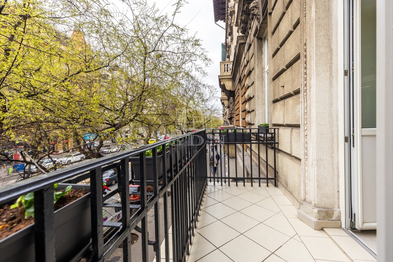 VI. kerületben, a Teréz körút egyik patinás, liftes társasházában kínálunk eladásra egy 106 m²-es, teljes körűen felújított, bútorozott, erkélyes lakást.